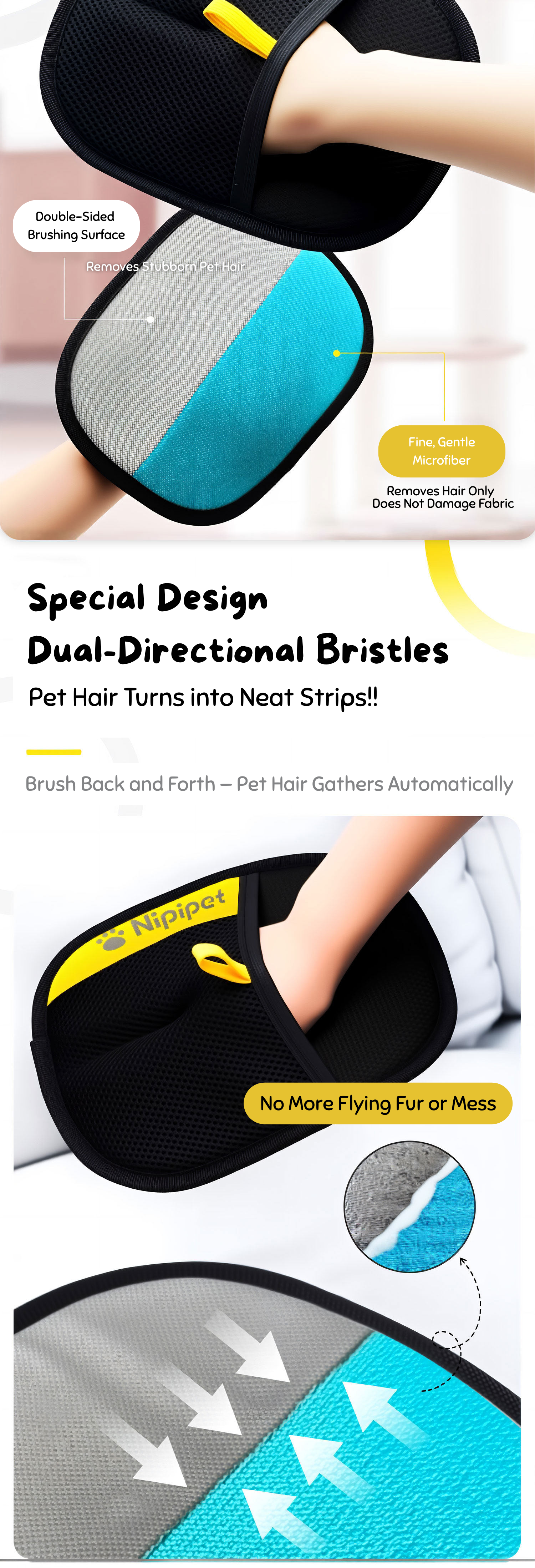 ✔ Removes pet hair in seconds
